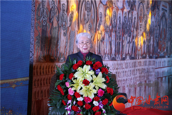 常沙娜先生與敦煌研究院副院長(zhǎng)羅華慶共同為“中國(guó)敦煌石窟保護(hù)研究基金會(huì)常書(shū)鴻敦煌藝術(shù)專項(xiàng)基金”揭牌。