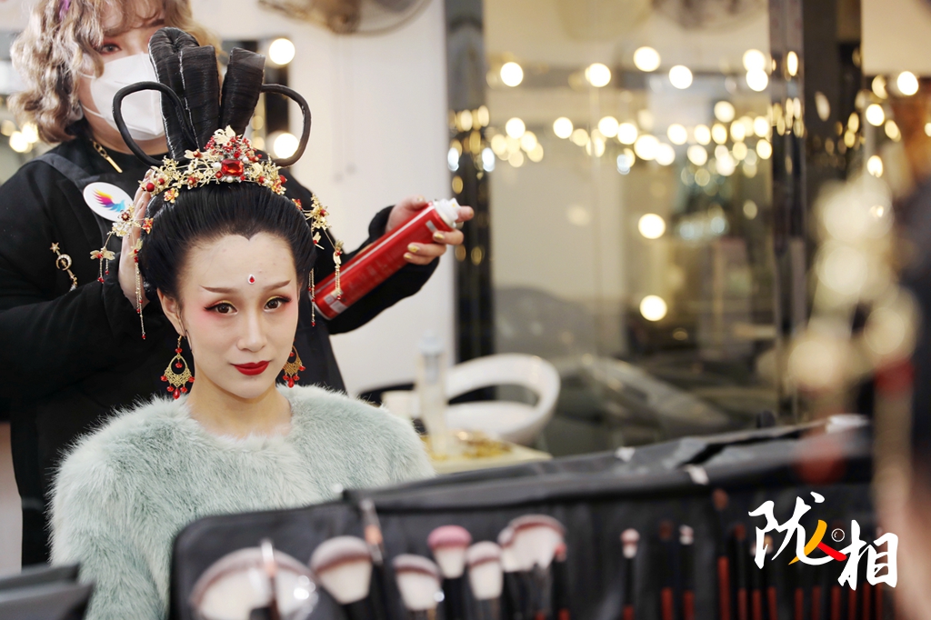 4月10日,陳婉琪做了三個多小時的造型,“因為是要參考敦煌壁畫的內(nèi)容來做,所以不管是服飾還是妝容,都要一點點的調整。”