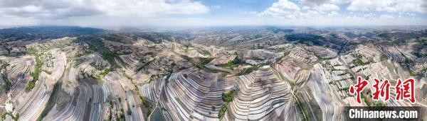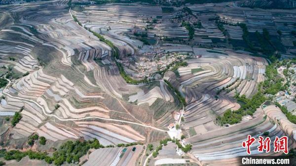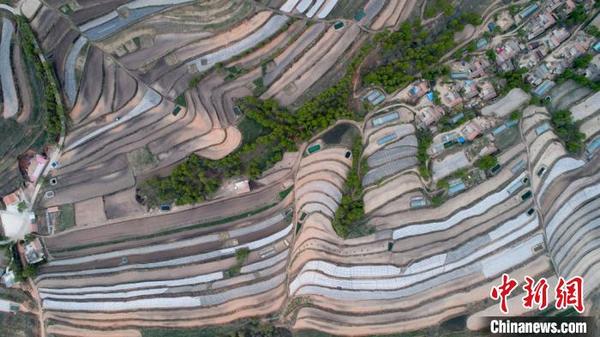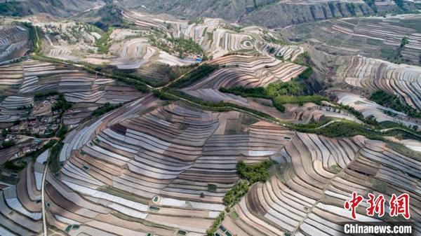 5月14日,甘肅省定西市安定區(qū)梯田廣袤,如同“五線(xiàn)譜”纏繞在黃土高原。定西市位于黃土高原丘陵溝壑地區(qū),是一個(gè)生態(tài)環(huán)境十分脆弱的地方。多年來(lái),定西人堅(jiān)持在生態(tài)文明和梯田建設(shè)上下功夫,總結(jié)并開(kāi)發(fā)多種治理模式,在生態(tài)得以改善的同時(shí),還產(chǎn)生經(jīng)濟(jì)效益。