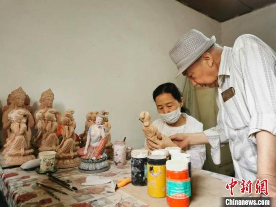 中新網蘭州9月2日電 (閆姣 馮志軍 高瑩)八旬敦煌彩塑藝人魯勤學,耗時四十余載摸索敦煌彩塑的制作工藝,他還創(chuàng)新“立體”壁畫,將壁畫中的佛像形象都制作成了便于游客攜帶的彩塑。“我特別想通過自己微薄的力量把家鄉(xiāng)推介出去,想讓大家都知道敦煌彩塑的魅力。”他說。