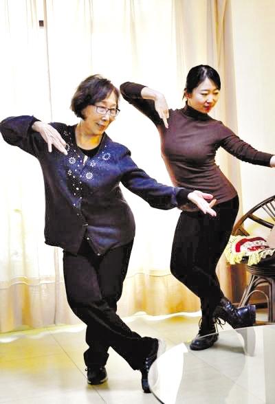 高金榮(左)指導(dǎo)蘭州文理學(xué)院的舞蹈老師舞藝