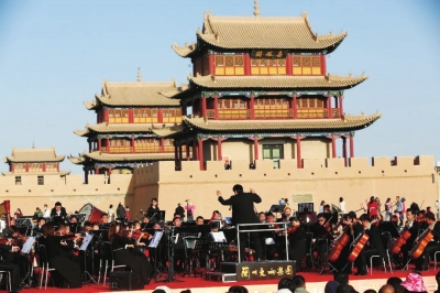 近日,大型交響樂(lè)《長(zhǎng)城》于中秋、國(guó)慶“雙節(jié)”黃金周在國(guó)家5A級(jí)景區(qū)嘉峪關(guān)關(guān)城激情上演,雄渾的交響曲不僅使得古老絲路精神再次煥發(fā)勃勃生機(jī),更用動(dòng)人的旋律再一次解讀了“一帶一路”倡議和國(guó)家向西開放戰(zhàn)略給甘肅帶來(lái)的重大機(jī)遇,闡釋了“交響絲路、如意甘肅”豐富而嶄新的意蘊(yùn)。