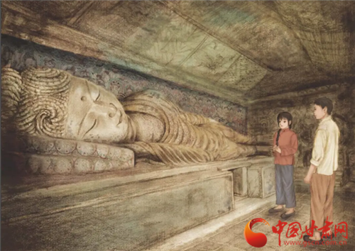 蘭州市民張女士忠愛敦煌藝術(shù),家里收藏了很多關(guān)于敦煌的書籍、文創(chuàng)產(chǎn)品。每次逛書店,看到與敦煌相關(guān)的圖書,她都要仔細(xì)翻閱??吹健锻坎级鼗汀烦霭?,她特意為女兒買了一本。“這本書的故事性很強(qiáng),代入感也比較強(qiáng),對青少年來說,是本很不錯的課外讀物。既能看到敦煌藝術(shù)、敦煌文化背后的故事,又能從幾個主人公身上體會到他們不同的精神內(nèi)涵,特別感染人,很有正能量。”