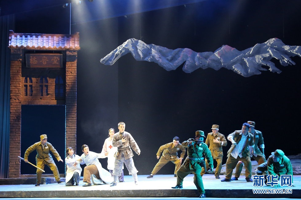 5月30日晚,大型秦腔現(xiàn)代戲《肝膽祁連》在蘭州音樂廳精彩上演?!陡文懫钸B》以真實的歷史故事改編,講述了愛國民主人士高金城營救紅西路軍戰(zhàn)士的感人故事。新華網發(fā)(王晶晶 攝)