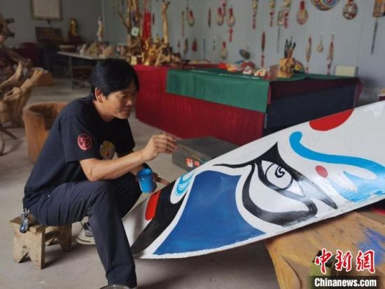 取材、挖空、刨光、勾線、著色……經過這些步驟,一個馬勺臉譜就完成了。馬勺臉譜由中國民間社火臉譜演化而來,已有數(shù)千年歷史,系列產品主要包括馬勺臉譜、梭子臉譜、鏟子臉譜、木锨臉譜等。9月初,甘肅省隴南市徽縣馬勺臉譜的省級傳承人馬龍,依舊在工作室創(chuàng)作。今年47歲的他,堅守馬勺臉譜的制作技藝已有20余載,不僅傳承了社火臉譜和京劇臉譜的古韻,而且創(chuàng)新了貼金、刻繪等技藝,在傳統(tǒng)中融入了現(xiàn)代造型和色彩元素。它的作品在網(wǎng)絡引起熱議:“臉譜畫在梭子上,厲害了。”“寶藏非遺,期待下次打卡。”