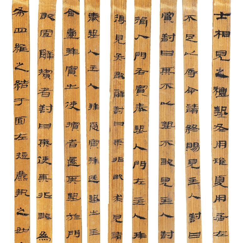 “禮儀出大家”?!秲x禮》確實是上層社會的各項禮儀準則??墒牵瑐鞒形拿鞑⑹怪l(fā)揚光大的不僅僅是貴族階層,普通的知識分子乃至社會的普通民眾更是文明的創(chuàng)造者和傳播者。就如《儀禮》簡上一行行端正秀麗的隸書,蠶頭燕尾、逆入平出,筆勢流暢,工整秀麗,簡直是書法界的奇珍異寶!而這筆端秀的漢隸不過出自一位名不見經(jīng)傳的讀書人之手而已。所謂,大家在民間!
