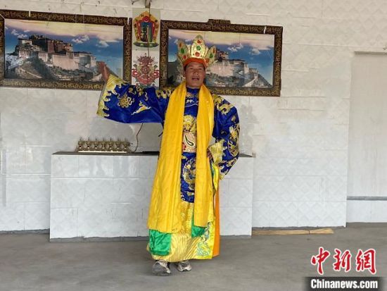 圖為外木村“南木特”藏戲演出隊成員出演智美更登?!∷巫雨俊z