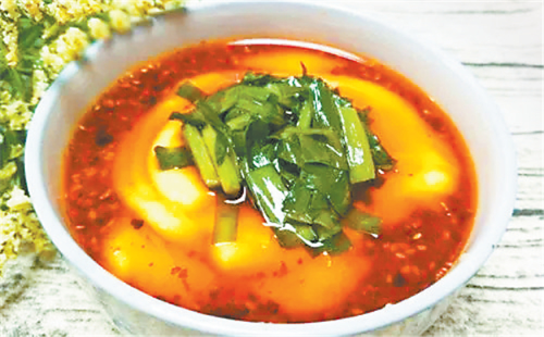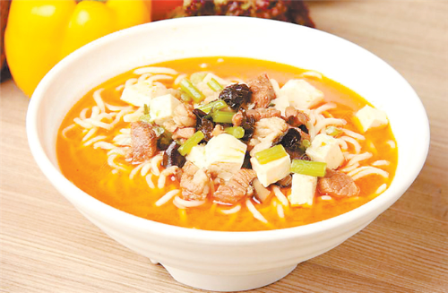 西峰的臊子面也很有地方特色,因其太辣,吃在嘴里不斷發(fā)出噓噓哨聲,故又稱“哨子面”。西峰臊子面制作獨(dú)特,吃法有趣,堪稱一絕。正如一首民歌唱到“十八省里(那個)轉(zhuǎn)一遍,好不過咱們西峰的臊子面”。西峰臊子面做工精細(xì),制作分揉面、搟面、做湯、煮面幾個工序:“抻的面銀團(tuán)團(tuán),搟的面紙一般,剁的面千條線,下到鍋里蓮花轉(zhuǎn),撈到筷子上打秋千,盛到碗里賽牡丹。”做成的臊子面條長如線,細(xì)如絲,長而柔韌,細(xì)而不斷,噴香美味,別具風(fēng)味。
