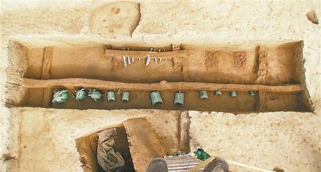 禮縣大堡子山遺址秦代銅編鐘發(fā)掘現(xiàn)場(chǎng)
