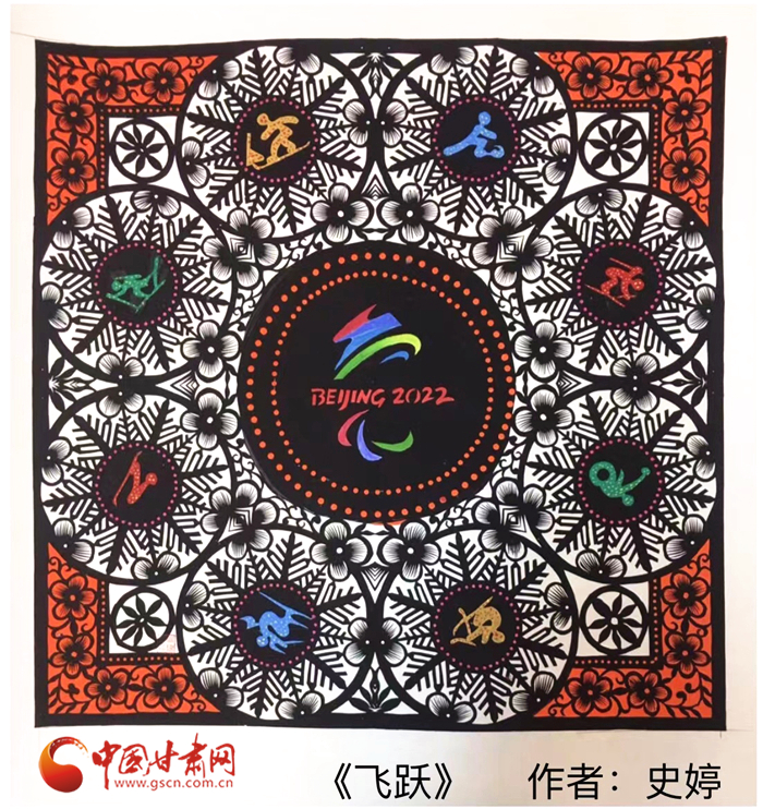 “剪紙是中國傳統(tǒng)文化,也是我的特長,所以我就用剪紙的形式創(chuàng)作了這兩幅《冬夢》《飛躍》”。時值冬奧會在北京盛大開幕,史婷以冬奧會和冬殘奧會的會微為主題,加上一些比賽項目的標志,創(chuàng)作了兩幅剪紙藝術作品。“我想通過作品為奧運健兒們加油助力,希望他們在比賽中能取得更好的成績。”她說。