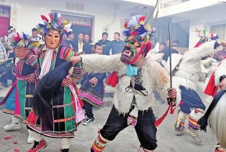 “池哥晝”是居住在文縣鐵樓鄉(xiāng)的白馬人傳承至今的一種民間舞蹈和傳統(tǒng)祭祖活動,為國家級非物質(zhì)文化遺產(chǎn)。“池哥晝”是隴南白馬語的音譯,為山神之意,“晝”表示舞蹈。“池哥晝”因表演時(shí)頭戴面具,亦稱“白馬面具舞”。白馬人是古代仇池國白馬氐族后裔,距今有兩千多年歷史。