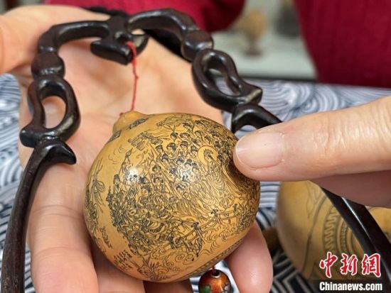 2月15日,蘭州市非遺傳承人陳兵在工作室展示自己雕刻的微雕作品,她擅長(zhǎng)在雞蛋大小的葫蘆上雕刻敦煌壁畫、敦煌飛天,以及佛教經(jīng)文,一把刻刀上下翻飛之后,雕刻形象神態(tài)逼真。