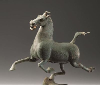 造型矯健精美,作昂首嘶鳴,疾足奔馳狀,被認(rèn)為是東西方文化交往的使者和象征,為中國旅游的標(biāo)志。