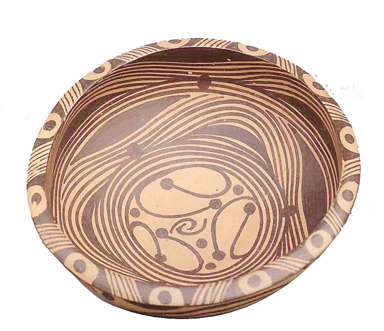 “這個(gè)彩陶盆做工精美,水波紋線條流暢優(yōu)美,真漂亮!”
