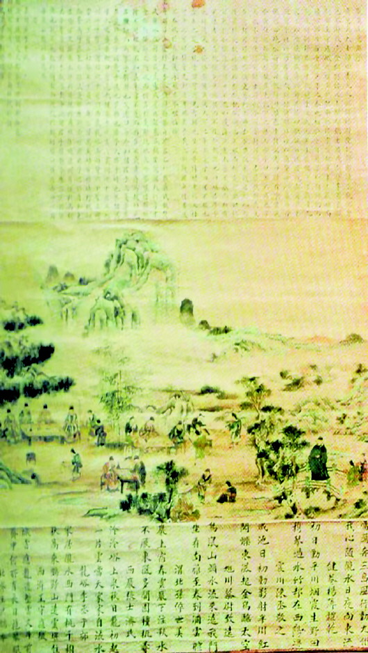 “隴溪九逸”每逢集會(huì),必懸此圖。他們繼承中國(guó)文人優(yōu)良的傳統(tǒng)美德,“居廟堂之高則憂(yōu)其民,處江湖之遠(yuǎn)則憂(yōu)其君”,看似醉情山水,實(shí)則壯心不已,制訂鄉(xiāng)約,設(shè)館授徒,為家鄉(xiāng)的文化教育事業(yè)發(fā)揮著余熱。從這個(gè)意義上說(shuō),明代秦安“隴溪九逸”正是古代知識(shí)分子憂(yōu)國(guó)憂(yōu)民的一個(gè)縮影,亦是那個(gè)時(shí)代的一抹春色。