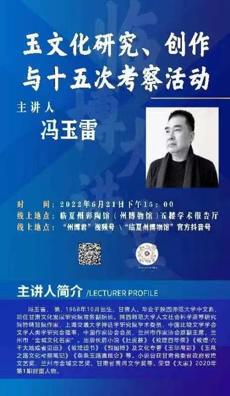 為認(rèn)真貫徹落實(shí)省第十四次黨代會精神,進(jìn)一步弘揚(yáng)中國玉文化和民族精神,推動玉文化傳承及玉文化文創(chuàng)產(chǎn)業(yè)發(fā)展。6月21日下午,甘肅文化發(fā)展研究院常務(wù)副院長馮玉雷受邀在臨夏州彩陶館(州博物館)學(xué)術(shù)報(bào)告廳作了題為《玉文化研究、創(chuàng)作與十五次考察活動》的學(xué)術(shù)講座。
