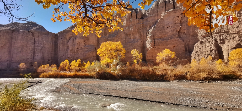 初冬時(shí)節(jié),這里的胡楊林五彩斑斕,金碧輝煌,黃燦燦的樹(shù)葉與藍(lán)天、白云相映成趣。在陽(yáng)光的照耀下,金黃色的樹(shù)葉隨風(fēng)搖曳,肆意而優(yōu)雅,為秋天帶來(lái)幾分浪漫。身入林中,涼爽的空氣中洋溢著淡淡清香,像溫暖的秋陽(yáng),沁人心脾。