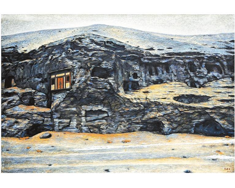 房建平多年來扎根甘肅、扎根西北,深受敦煌藝術(shù)的影響,并由此產(chǎn)生了自己獨到的見解。他以當(dāng)下的視角去審視千年之前的敦煌壁畫,思考古代工匠創(chuàng)作的技法運用以及時代所賦予工匠們的精神面貌。他在深入研究敦煌壁畫的過程中,被那豐富的色彩所吸引,被那厚重斑駁的肌理所嘆服,被那點線面的旋律所震撼。他孜孜不倦、廢寢忘食地學(xué)習(xí),吸收借鑒敦煌壁畫的元素,然而并非簡單地臨摹、復(fù)制與再現(xiàn),而是于審視、思索之后源源不斷地發(fā)現(xiàn)、感受、弘揚。更為可貴的是,他竭力探尋敦煌莫高窟的精神內(nèi)涵,包括開放包容多元文化一體的精神、莫高窟守護人的工匠精神的共同凝聚。