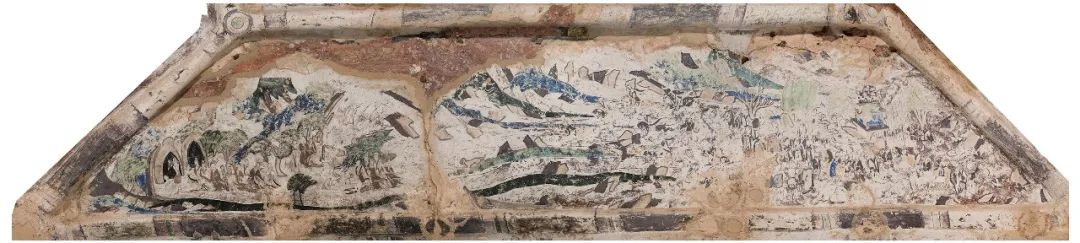 隋唐時(shí)期是麥積山石窟歷史上的一個(gè)重要轉(zhuǎn)折階段,根據(jù)對麥積山崖面現(xiàn)存窟龕綜合考察分析,可知到北周時(shí),壁面上已是窟龕密布,幾乎已經(jīng)沒有多少可供利用的位置。這一時(shí)期現(xiàn)存窟龕主要有第5、8、10、13、24、37等窟,多為隋代開鑿。其中第5窟完成于初唐,繪制于右側(cè)大龕外壁上方的西方凈土變,場景壯觀、人物眾多,是唐代壁畫的杰出之作。