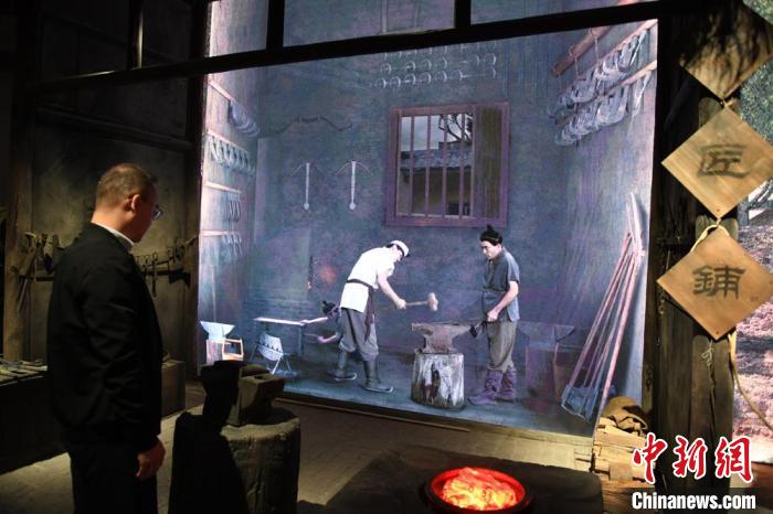 圖為游客在大漢賦館內(nèi)參觀(guān)鐵匠鋪?!〈魑牟?nbsp;攝