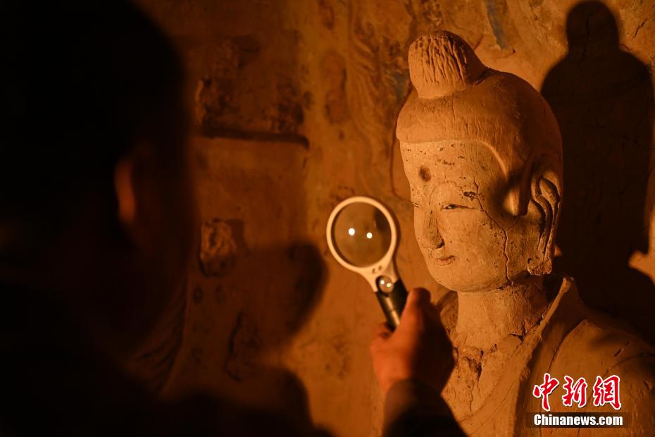 有時(shí)候看似簡(jiǎn)單的佛像修復(fù)會(huì)遇到各類不同的文物病害,修復(fù)時(shí)間會(huì)長(zhǎng)達(dá)三年之久,他也見(jiàn)證了文物修復(fù)技藝的變遷。隨著科技進(jìn)步文物修復(fù)手段也變得越來(lái)越先進(jìn),他認(rèn)為未來(lái)的文物保護(hù)工作一定會(huì)越來(lái)越好,年輕文保工作者們也一定會(huì)想盡更多辦法留住這座世界文化遺產(chǎn)。圖為8月25日,文物修復(fù)師牟常有正在仔細(xì)觀察佛像表面出現(xiàn)的病害問(wèn)題。李亞龍 攝