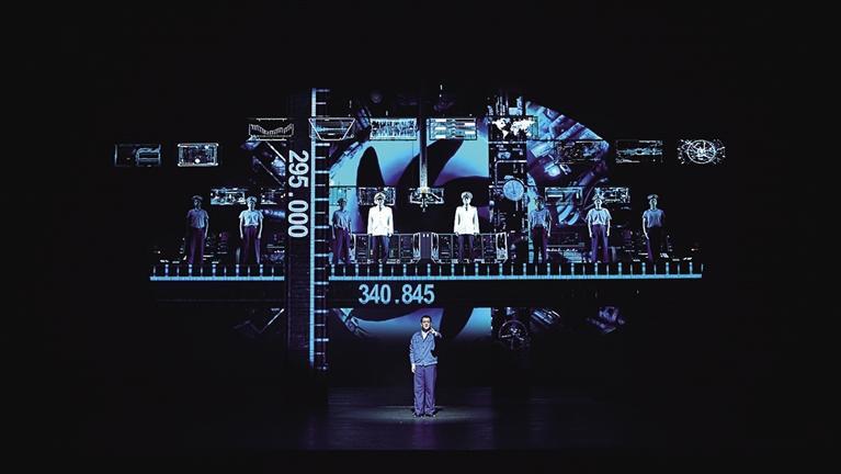 據(jù)了解,舞臺(tái)裝置上呈現(xiàn)出軍事工業(yè)的莊重感,如歌如畫(huà)般營(yíng)造出了核潛艇極限下潛步步驚心的緊張氛圍,同時(shí)也讓觀(guān)眾近距離地走近了英模的成長(zhǎng)歷程與內(nèi)心世界。