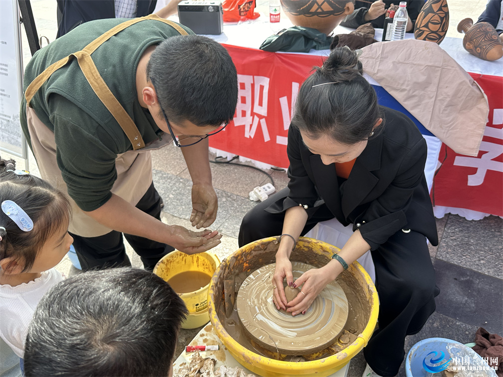 當(dāng)日的活動(dòng)中,蘭州職業(yè)技術(shù)學(xué)院非物質(zhì)文化遺產(chǎn)學(xué)院的師生現(xiàn)場(chǎng)展示蘭州刻葫蘆、慶陽(yáng)剪紙、木版年畫、甘南藏族唐卡、泥板畫、甘肅彩陶、掐絲琺瑯畫等非遺技藝,吸引了很多市民見此情景駐足觀看。其中甘肅彩陶展示尤為引人注目,不少市民上手體驗(yàn),在學(xué)院同學(xué)的幫助下體驗(yàn)非遺文化。市民張女士說(shuō):“這是我第一次體驗(yàn)制作甘肅彩陶,讓人印象非常深刻,了解了古人是如何制作彩陶的,也讓我'沉浸式'感受到非遺文化的魅力。”