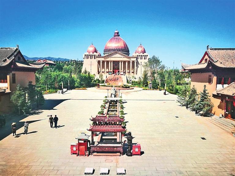 “驪靬古城”又被稱為“和平之城”。古城建在原古寺金山寺舊址上,城墻氣勢恢宏,東西南北各建門樓,四角各筑角樓。城內(nèi)建筑錯落布局,尤以外形具羅馬式建筑風格的“萬神殿”最醒目,金色穹頂,羅馬石柱,刻有圖案,工藝精致,清新典雅。拾級上城墻,四周杏黃旗圍繞,迎風獵獵。城東古羅馬廣場小巧玲瓏,別具一格;城南祁連山山巒相連,松柏林立;城西巍峨俊秀的胭脂山遙遙相對;城北建有幸福樂園。遠眺,永昌縣城全貌一覽無余。