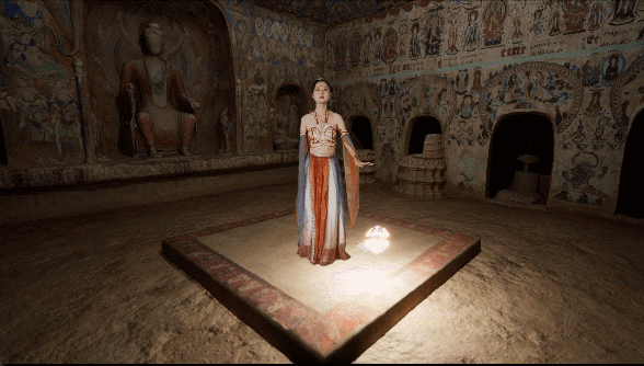 體驗(yàn)過后,游客還能在虛擬演播廳,實(shí)時拍攝一段真人與洞窟虛擬場景交互的視頻。無論身處何處,打開手機(jī)便能重溫這段“帶得走”的敦煌記憶。