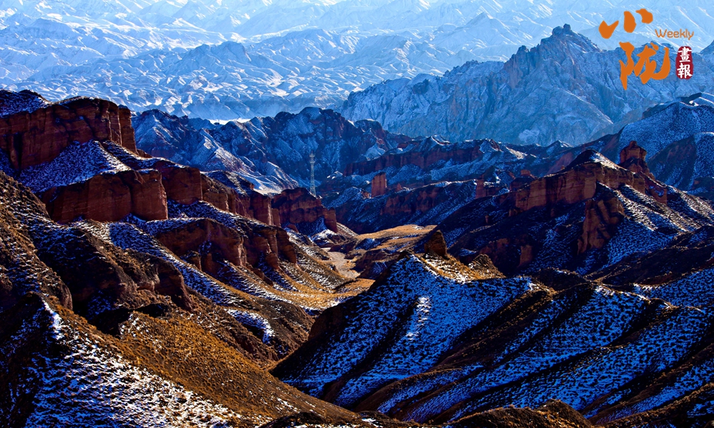 雪后初晴,紅色的山體與潔白的積雪交相輝映,丹霞奇觀在冬雪的映襯下宛如仙境,蔚為壯觀。