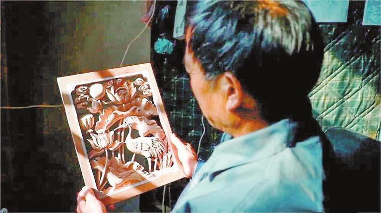 每次的心領(lǐng)神悟,李丁合都能讓圖紙上的花鳥、蟲魚、山水、人物都銘記腦中,并最終在木材上形象逼真地勾畫出來。雕刻一生,回望學(xué)藝之初,一切仿佛早有定數(shù),他的一生都在這一筆一畫的雕刻中,與木頭結(jié)下了不解之緣。