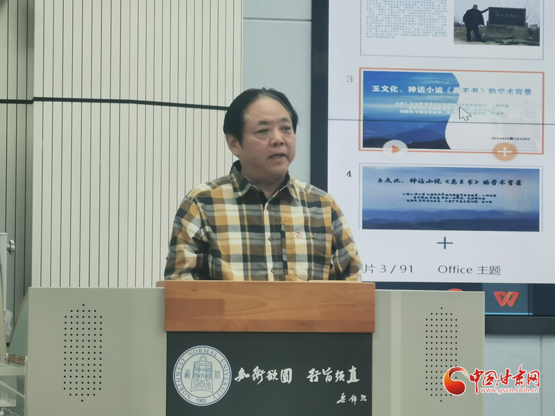 4月24日晚,馮玉雷講座“玉文化、神話小說《禹王書》的學(xué)術(shù)背景”在西北師范大學(xué)舉辦。這次講座是甘肅文化發(fā)展研究院和中國甘肅網(wǎng)聯(lián)合舉辦的“玉文化玉華夏文明高端論壇”系列講座第十講,也是近期啟動的“巡禮馬銜山:玉文化與文學(xué)融合發(fā)展”系列活動之一,甘肅文化發(fā)展研究院常務(wù)副院長、一級作家馮玉雷主講,國家一級編劇、戲劇評論家肖美鹿,中國音協(xié)會員、甘肅廣電總臺高級編輯、作曲家劉新民擔(dān)綱學(xué)術(shù)評議嘉賓。