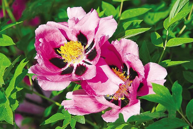 小城萬千的牡丹,紫斑牡丹是魁首。生長在臨夏大地上的紫斑牡丹,與菏澤牡丹、中原牡丹涇渭分明,那絢麗的花色,花瓣基部的紅、紫、黑三色組成的放射斑,獨樹一幟,熠熠生輝。因此,作為耀眼的城市名片,成為標(biāo)簽,恰如其分地貼在臨夏的詞典上。因而,當(dāng)提及臨夏,人們就會想到牡丹,就有身處國色天香的佳境和美感。
