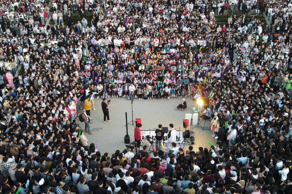 “最近在短視頻平臺上‘蘭州黃河大合唱’的話題很火,我們刷到后就趕過來了?,F(xiàn)場人山人海,氛圍感拉滿,有種露天現(xiàn)場酒吧的感覺。”趁著周末,來自蘭州城市學院的大學生陳佳儀和4名好友,相約打卡這個蘭州夜游新地標,感受黃河之濱的青春與活力。
