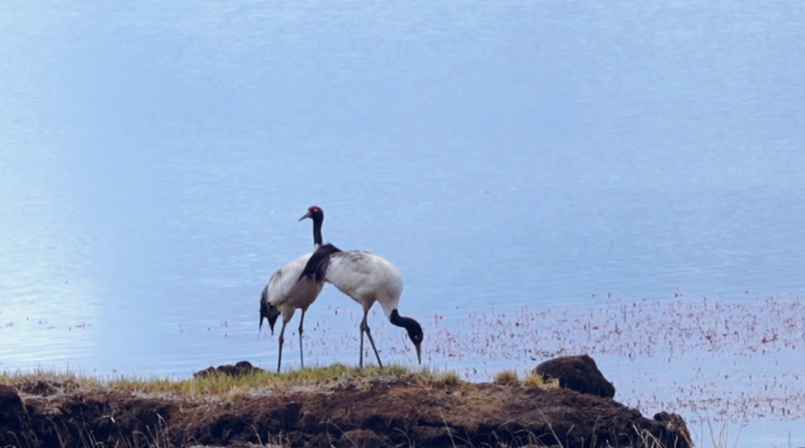 進(jìn)入5月,在位于青藏高原東端的甘肅省甘南州碌曲縣尕海則岔國(guó)家級(jí)自然保護(hù)區(qū),各類候鳥也迎來了繁殖期。黑鸛、白琵鷺、黑頸鶴等珍稀鳥類,或嬉戲鳴叫,或翩躚飛舞。