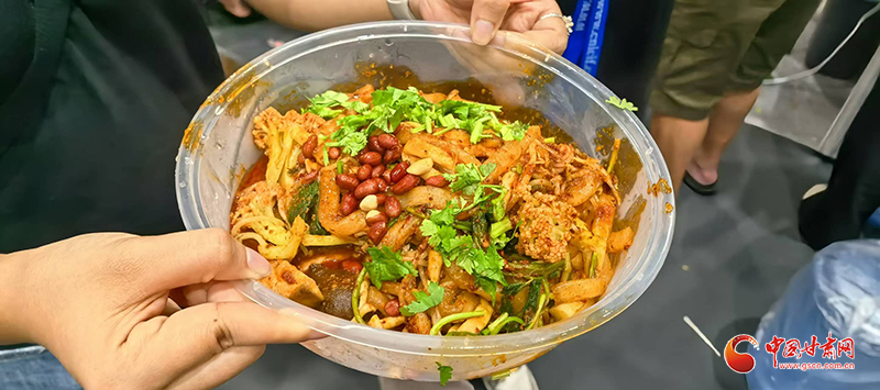 記者在現(xiàn)場看到,前往蘭州牛肉面、天水麻辣燙兩個展區(qū)品嘗美食的游客絡繹不絕。特別是在天水麻辣燙展區(qū),端著裝有各類蔬菜菜盆的食客排起了長隊,紛紛翹首以盼,期待蔬菜下鍋,一嘗“麻”“辣”美味。