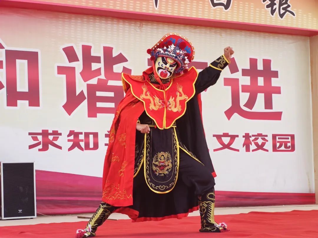 活動(dòng)現(xiàn)場(chǎng),戲曲表演者們身著華麗的戲服,用字正腔圓的唱腔和精湛的表演技藝,為師生們帶來(lái)了一場(chǎng)視聽(tīng)盛宴。從《大圣歸來(lái)》到《雙官誥·三娘教子》的深情演繹,再到《鍘美案·三對(duì)面》和《川劇變臉》的激昂表演,每一場(chǎng)演出都贏得了在場(chǎng)師生的熱烈掌聲。演員們通過(guò)圓潤(rùn)的唱腔和豐富的肢體語(yǔ)言,將劇中人物的情感和命運(yùn)展現(xiàn)得淋漓盡致,讓師生們感受到了戲曲藝術(shù)的獨(dú)特魅力。