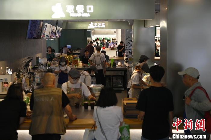 6月19日,甘肅省博物館藝術(shù)生活館在甘肅蘭州開館。該館是甘肅省博物館打造的一處復(fù)合型高價值文化空間,融合了咖啡、烘焙、展覽、藝術(shù)書店、文創(chuàng)銷售等多樣化業(yè)態(tài)。圖為游客在咖啡區(qū)排隊等待。中新社記者 李亞龍 攝