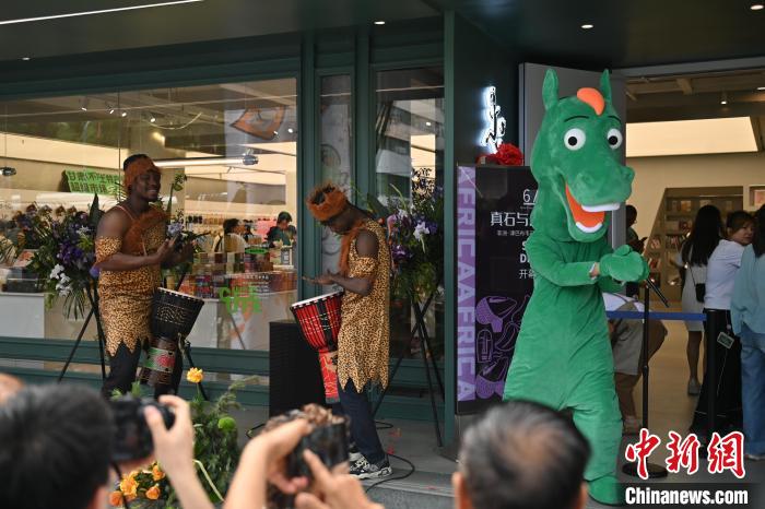 6月19日,甘肅省博物館藝術(shù)生活館在甘肅蘭州開館。該館是甘肅省博物館打造的一處復(fù)合型高價值文化空間,融合了咖啡、烘焙、展覽、藝術(shù)書店、文創(chuàng)銷售等多樣化業(yè)態(tài)。圖為綠馬真人玩偶(右一)熱舞吸引游人。中新社記者 李亞龍 攝