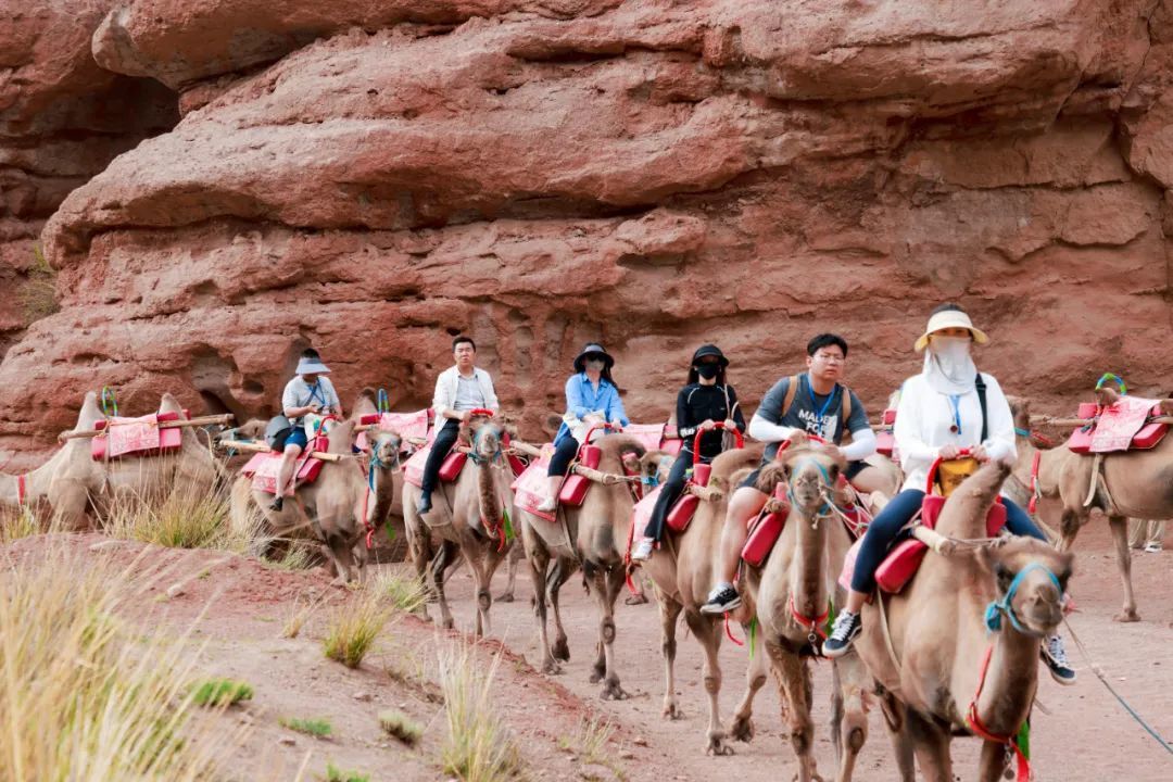 在甘州區(qū)平山湖大峽谷,采風(fēng)團(tuán)成員乘坐越野車進(jìn)入夢幻大峽谷谷底,在藍(lán)天白云下,縱橫的溝壑、林立的群峰、幽靜的森林、蒼茫的戈壁、多彩的民俗讓采風(fēng)團(tuán)成員嘆為觀止。來自福建的微博三百萬大V張文圖說:“我已經(jīng)是第三次來張掖,此刻騎著駱駝踏入峽谷,抬頭看那高聳的崖壁帶來的震撼感瞬間將我包圍。沿著峽谷前行,每一步都充滿驚喜,太讓人驚嘆了。”“這次采風(fēng)活動(dòng)為我們搭建了很好的交流平臺,特別是張掖獨(dú)特的地貌和優(yōu)美的自然風(fēng)光,都是很好的攝影素材,希望大家在這里收獲滿滿!”來自飛翔旅行的曹偉說。