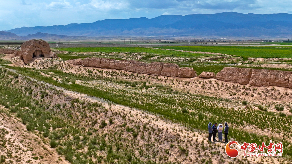 6月27日,甘肅省張掖市山丹縣漢明長城保護研究中心工作人員正在金山子漢明長城段進行現(xiàn)場勘察和數(shù)據(jù)采集。