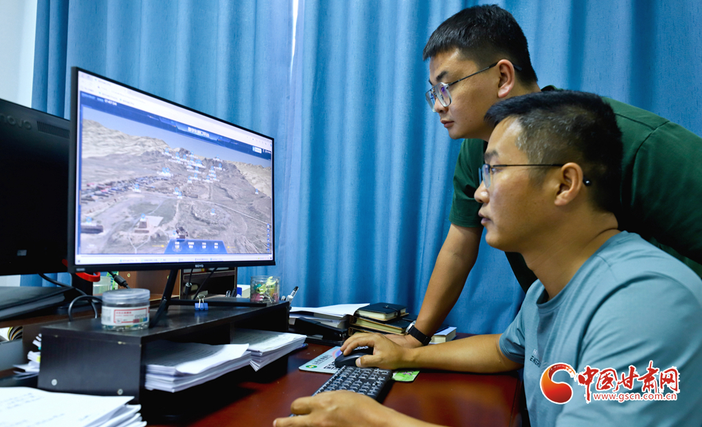 6月27日,甘肅省張掖市山丹縣漢明長城保護研究中心工作人員正在三維數(shù)字化平臺進行長城和烽火臺的數(shù)據(jù)測量。