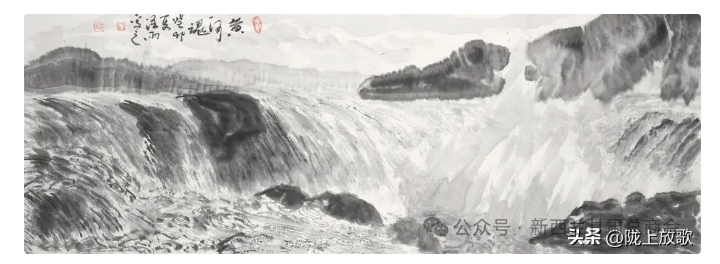 藝無(wú)止境。30多年來(lái),何建祥先生一方面不斷汲取馬西園等老一輩藝術(shù)家豐厚的藝術(shù)養(yǎng)分;一方面道法自然,不斷汲取來(lái)自黃河的天然養(yǎng)分。這使得何建祥先生的畫(huà)既有師承:又有突破。他畫(huà)黃河,善用景別,善用焦墨,善用散鋒,善用皴擦,把“黃河之水天上來(lái),奔流到海不復(fù)回”的磅氣勢(shì)表現(xiàn)得十分貼切,已然形成了自己的藝術(shù)面貌和個(gè)人風(fēng)格。