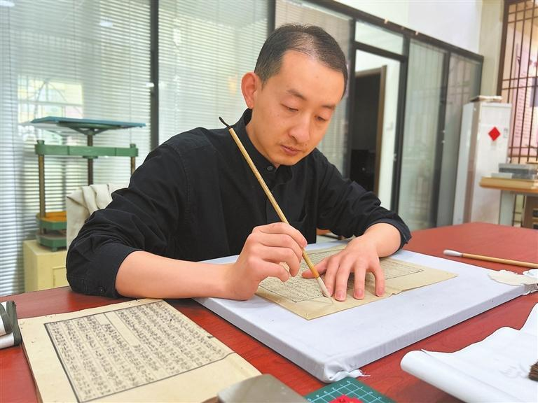 “我們這個工作更重視實操能力,一般新手都要先從觀摩開始,最先上手的工作普遍是補蟲洞。”杜泓瑞說,“古籍修復實際上是一門交叉學科,從古漢語到繪畫美術(shù),再到傳統(tǒng)古籍裝幀出版,需要學習的課程和掌握的知識涉及許多領(lǐng)域,而隨著年輕人的加入,會將很多新式手法和理論運用到修復中,但也需要年輕人沉下心不斷對古籍修復理論化、課程化進行深入探索。”