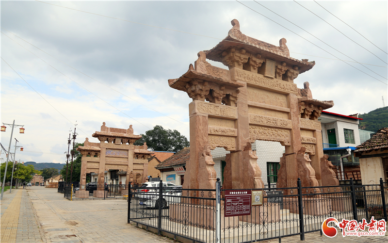 據(jù)介紹,三座牌坊都采用紅砂巖石料鑿磨鑲砌而成,均為四柱三間三層,斗拱歇山頂式,坊面上雕刻有屋舍、山水、人物、飛禽、走獸、花卉、樹木等,其造型優(yōu)美,結(jié)構(gòu)嚴整,刀法細膩,形象逼真。