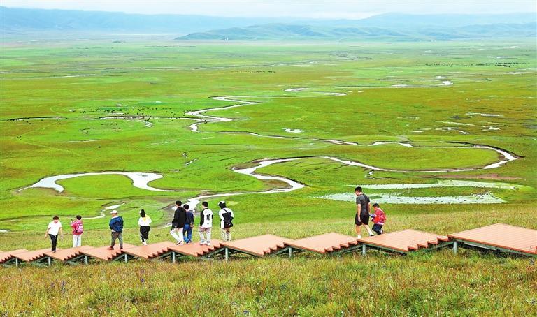 游客在瑪曲縣阿萬倉黃河濕地公園游玩。新甘肅·甘肅日報記者 田蹊