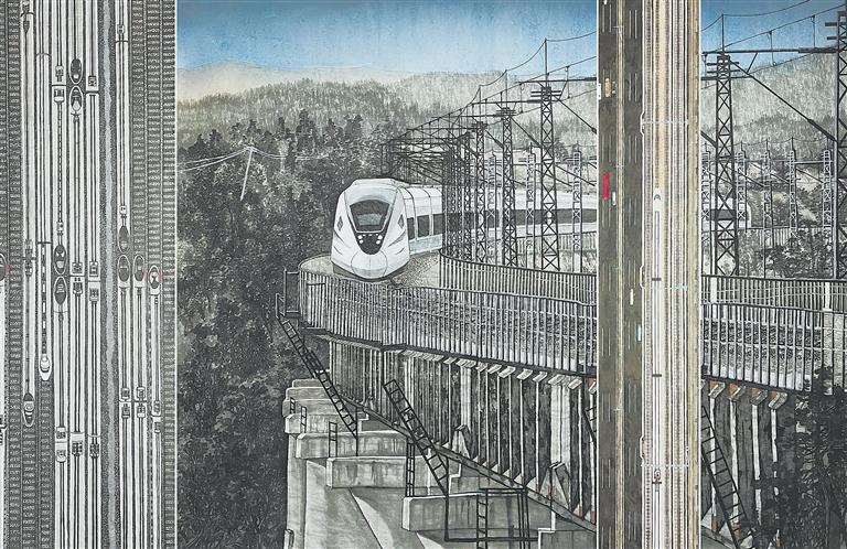 中國(guó)高鐵進(jìn)大山 (中國(guó)畫) 劉鋒