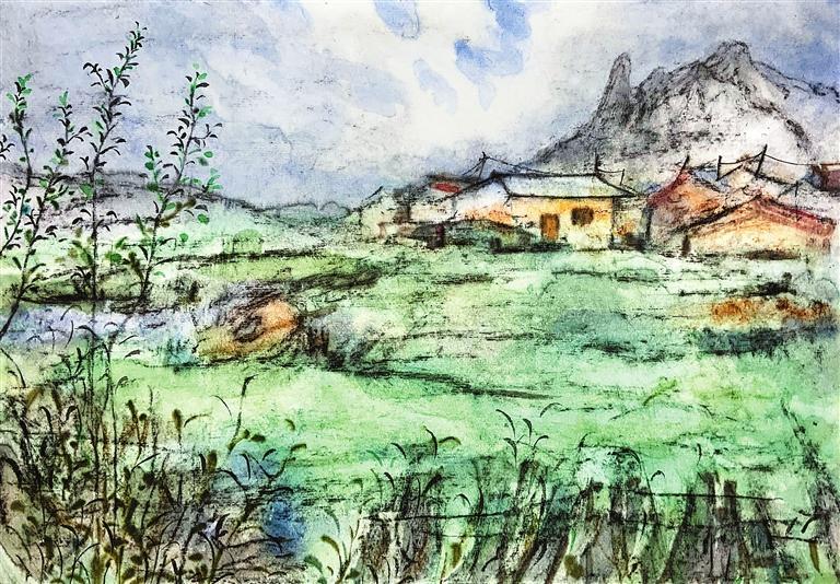 平常在畫室里畫畫時(shí),喜歡用淡淡的墨色體會(huì)與宣紙碰撞所散發(fā)出的獨(dú)特墨韻。但是描摹西部,需要更加深厚、絢爛、豐富的色彩,才能表達(dá)我們的感受,寄予我們對(duì)這片土地的深情。離開故土,踏向遠(yuǎn)方,那份對(duì)家鄉(xiāng)的無盡思念和深深眷戀,是每一位游子心中難以言喻的情感,如同無形的紐帶,將我們與故鄉(xiāng)緊緊相連。這種情感,如同西北高原上那連綿不絕的山脈,既遙遠(yuǎn)又清晰,既冷峻又溫暖。
