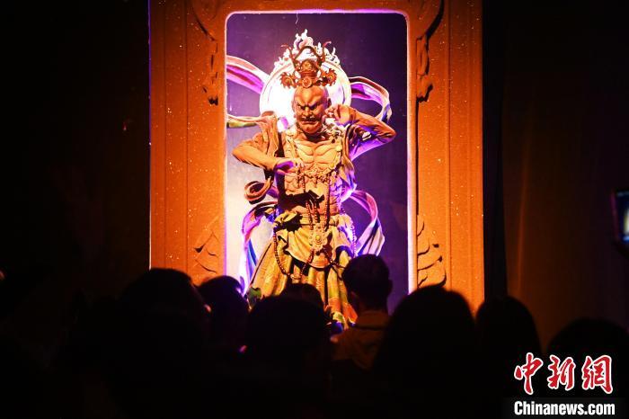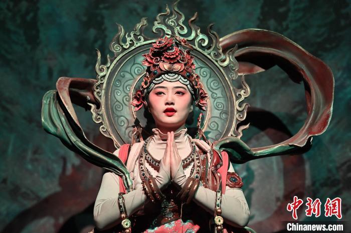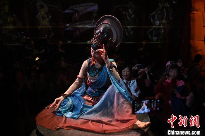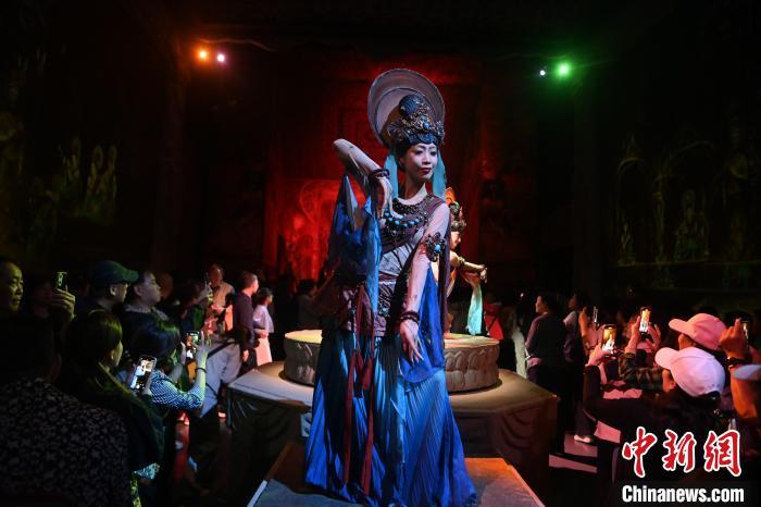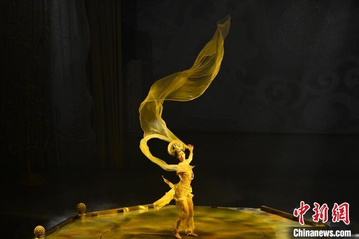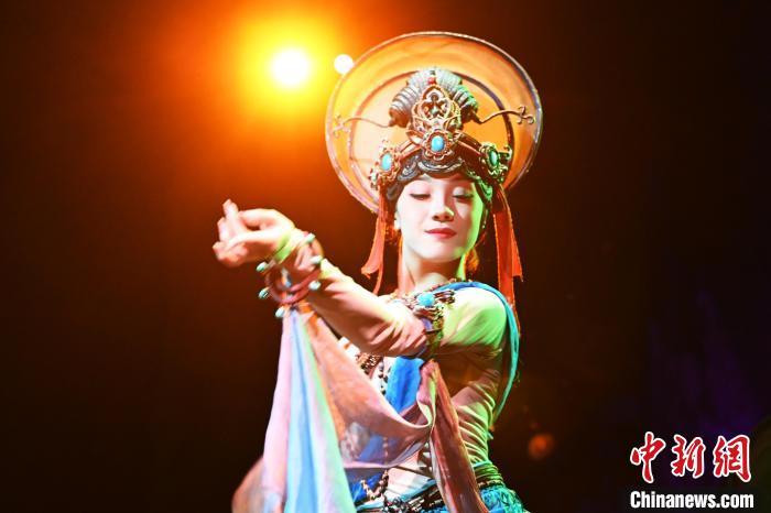 圖為演員在大型洞窟式沉浸體驗劇《樂動敦煌》中表演。九美旦增 攝