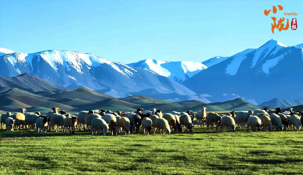 羊群猶如無數(shù)顆珍珠灑落在滿目的金色里,為這片廣袤的大地增添了無限的色彩,使得整個(gè)草原動(dòng)靜相宜。